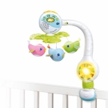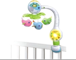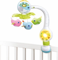 VTech spievajúci kolotoč 3v1 je všestranný pomocník pre pokojné zaspávanie aj zábavu na cestách. Farební vtáčikovia sa jemne otáčajú a spolu s hudbou a svetielkom vytvárajú upokojujúcu atmosféru. Kolotoč ponúkne české aj slovenské melódie a uspávanky, ktoré bábätku pomôžu rýchlejšie zaspať a cítiť sa v bezpečí.