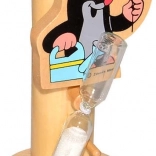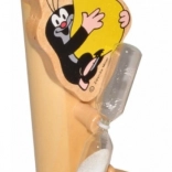 Drevený stojan na kefku s obľúbeným motívom Krtka a jeho priateľov, ktorý deťom spríjemní čistenie zubov s piesočnými hodinami.