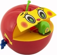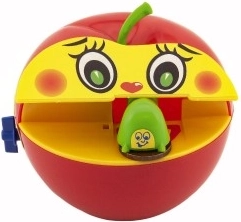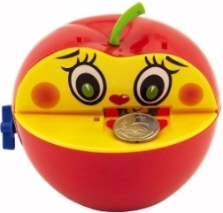 Táto plastová pokladnička napodobňuje obľúbené jablko a je ideálna pre deti od troch rokov. Vďaka mechanickému naťahovaniu na kľúčik je použitie zábavné a jednoduché. Po vložení mince červík mincu uchopí a zanesie ju do vnútra jablka, čo deti motivuje k šetreniu.