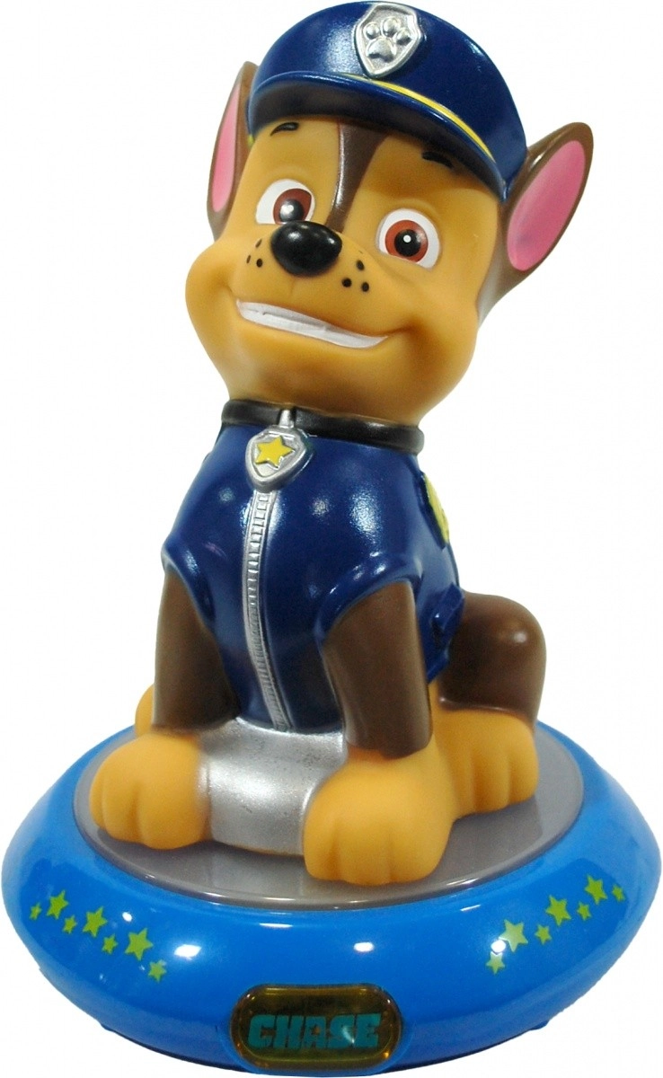 Nočná lampa s 3D figúrkou obľúbeného policajného psíka Chase z PAW PATROL prináša do detskej izby príjemnú atmosféru a istotu pri zaspávaní. Jemné svetlo neoslňuje, vytvára útulnú žiaru a pomáha deťom cítiť sa v noci bezpečne.