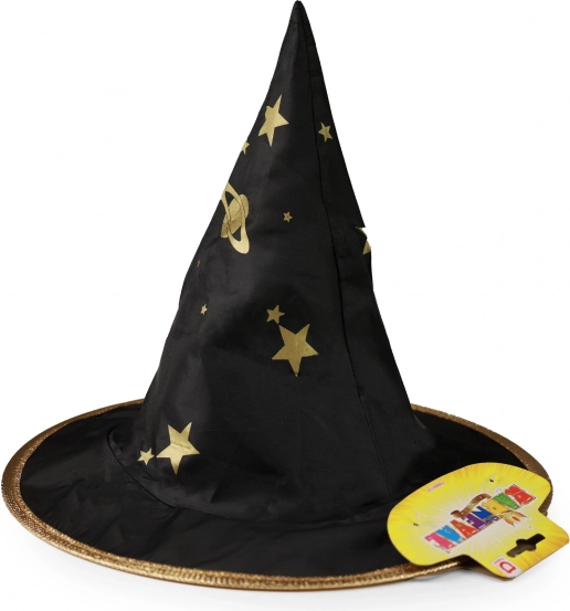 Klasický čarodejnícky klobúk s elegantnými zlatými motívmi hviezd a mesiacov dodáva účastníkom magický šarm.