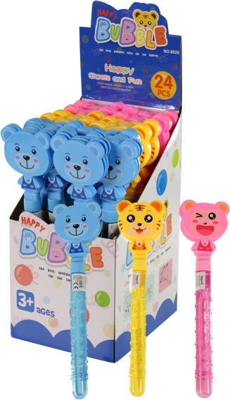 Praktické fúkadlo integrované vo viečku je vždy po ruke a mix farieb (modrá, ružová, žltá) s motívmi medvedíka, tigra a opičky poteší každého malého bublinára. Produkt je vhodný od 3 rokov. Pre ľahký nákup a doplnenie zásob ponúkame predaj iba po celom balení 24 ks.
