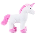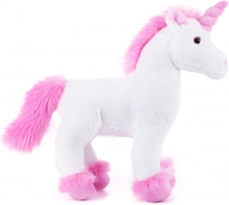 Roztomilý biely jednorožec s ružovou hrivou a trblietavým rohom s veľkosťou 32 cm poteší malých aj veľkých milovníkov zvieratiek. Je vyrobený z vysoko kvalitného jemného plyšu a vďaka ručnému spracovaniu pôsobí mimoriadne hebko a detailne. Skvelý ako darček pre deti od narodenia aj ako dekorácia do detskej izbičky.
