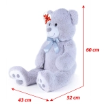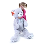 Veľký sivý plyšový medveď s dĺžkou cca 100 cm poteší svojou mäkkosťou, mojkavosťou a kvalitným spracovaním. Hebký povrch láka k objímaniu, saténová mašľa dodáva elegantný vzhľad a srdiečková visačka umožní pridať osobný odkaz – ideálne na narodeniny, sviatky aj ako dekorácia do detskej izby.