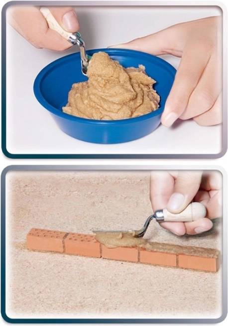Táto unikátna stavebnica vám umožní postaviť dom alebo hrad ako skutočný staviteľ. Stačí zmiešať maltu, spojiť tehly a pustiť sa do práce. Keď máte hotovo, môžete výtvor namočiť, usušiť a začať stavať znova.