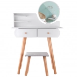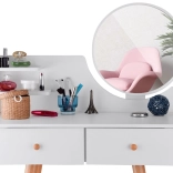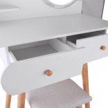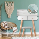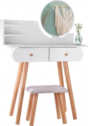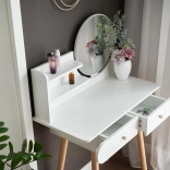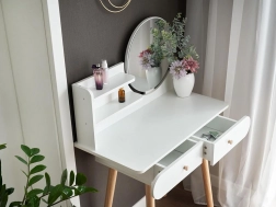 Škandinávsky štýl, ktorý si dizajnéri obľúbili už pred rokmi, sa skvele hodí do každej minimalistickej izby. Súčasné domácnosti sa čoraz častejšie obracajú k tomuto štýlu nábytku a oceňujú jeho minimalistický charakter a neutrálne farby. Preto tento toaletný stolík do tohto prostredia dokonale zapadá. Jeho jednoduchý dizajn a svetlé farby mu umožnia zapadnúť do každej miestnosti. Nábytok je vyrobený výhradne z drevenej MDF dosky. Nábytok sa montuje svojpomocne a dodáva sa s podrobným obrázkovým návodom.