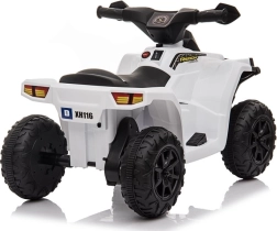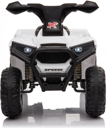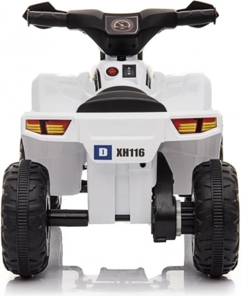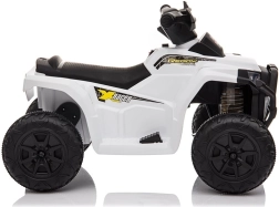 Táto štýlová detská elektrická štvorkolka poteší moderným vzhľadom a praktickým spracovaním. Široké kolesá s výrazným dezénom pomáhajú držať stabilitu na rôznych povrchoch a ľahko uchopiteľné riadidlá podporujú rozvoj jemnej aj hrubej motoriky.
