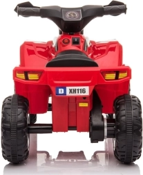 Detská elektrická štvorkolka XH116 je skvelou voľbou pre deti, ktoré milujú pohyb a dobrodružstvo. Pevná plastová konštrukcia, výrazný červený dizajn a realistické prvky ako riadidlá či predná maska podporujú fantáziu a zábavnú hru vonku aj vnútri.