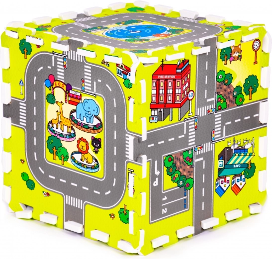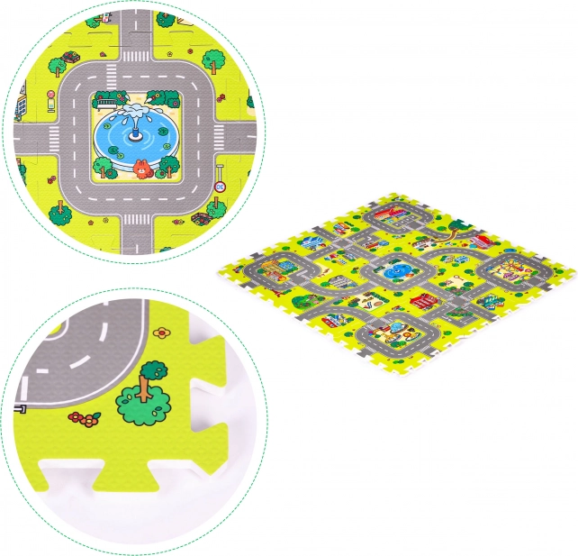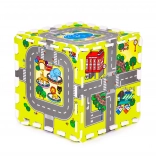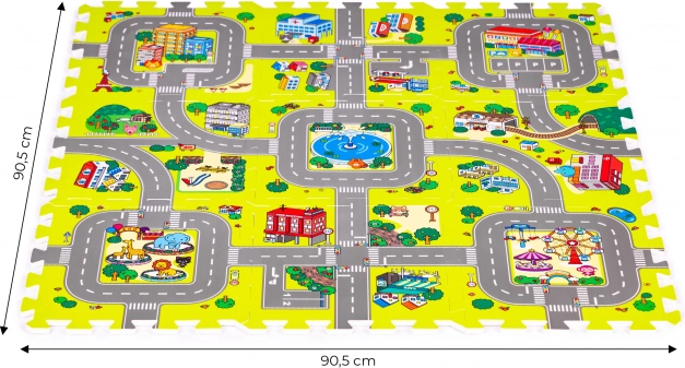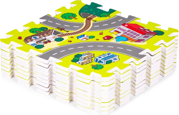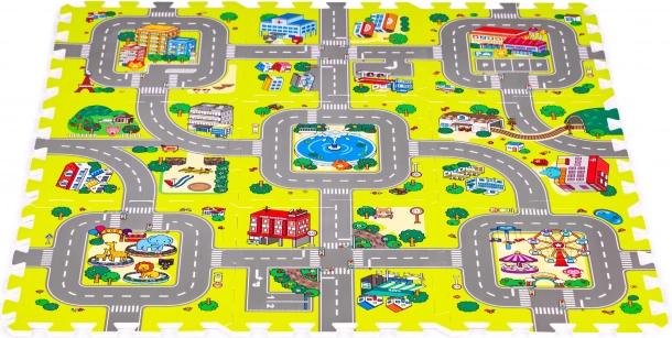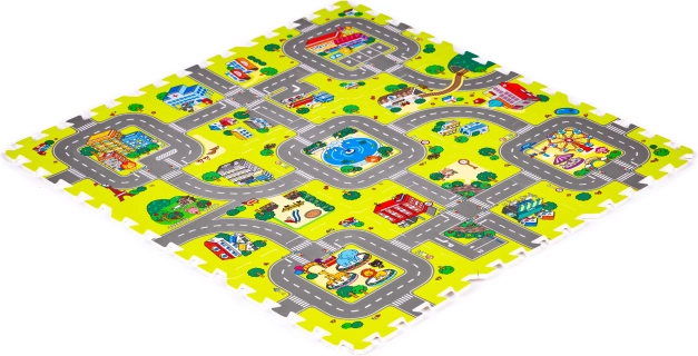 Táto penová hracia podložka s farebným motívom mesta, ciest a budov vytvára inšpiratívny priestor pre fantáziu, učenie aj rozvoj motoriky. Deťom poskytne komfortné a mäkké miesto na hranie, lezenie aj prvé krôčiky, zároveň chráni pred chladom z podlahy a tlmí nárazy pri pádoch.
