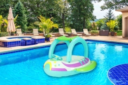 Praktický kryt chráni pred slnkom a umožňuje dlhšie, bezpečnejšie hranie vo vode bez prehriatia.