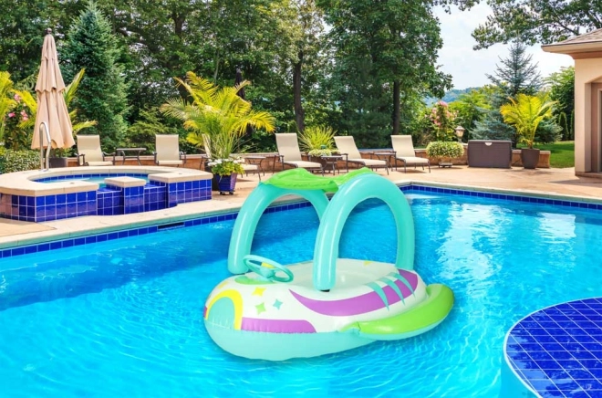 Urobte z letných dní nezabudnuteľnú zábavu! Toto detské nafukovacie plavidlo s pohodlným sedadlom, strieškou proti slnku a hracím volantom poskytne malým milovníkom vody bezpečné a pohodlné šantenie pri bazéne aj na pláži. Vďaka ochrannému krytu, stabilnej konštrukcii z PVC a max. nosnosti 45 kg je ideálne pre deti od 3 rokov.