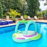 Nafukovací pontón BESTWAY v hravom „kozmickom“ dizajne premení každé kúpanie na dobrodružstvo. Strieška zaistí účinnú ochranu pred slnkom a mäkké dno so sedadlom prinesie maximálny komfort pri hre aj odpočinku. Volant podnecuje fantáziu a rozvíja motoriku.