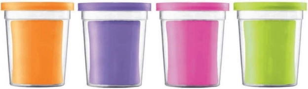Perfektná voľba pre malé deti milujúce umenie, pomáha pri rozvoji detskej jemnej motoriky. Transparentné kelímky umožňujú ľahkú identifikáciu farby hmoty vnútri.