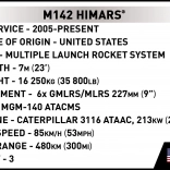 Model HIMARS ponúka realistickú stavbu v mierke 1:35, kde môžete postaviť model podľa vlastných predstáv a označení, vďaka bohatej sade dielikov. Váš model môže mať dĺžku 20,5 cm a doplní vašu zbierku moderných vojenských vozidiel a lietadiel.