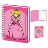 Štýlový krúžkový blok vo formáte A5 s motívom PRINCESS PEACH z legendárnej série SUPER MARIO. Ideálny na poznámky do školy, práce aj na cesty, s praktickým krúžkovým viazaním a atraktívnym herným dizajnom.