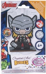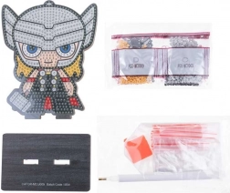 Objavte čaro diamantového maľovania v kompaktnej a zábavnej podobe Crystal Art Buddies. Vďaka predtlačenej šablóne postavičky a samolepiacim bodom jednoducho prenášate farebné kamienky na vyznačené miesta a krok za krokom vytvárate lesklú postavičku Thora na drevenom stojane. Tvorenie je intuitívne, upokojujúce a vhodné na spoločné chvíle s rodinou.