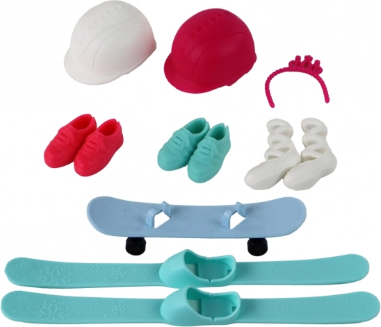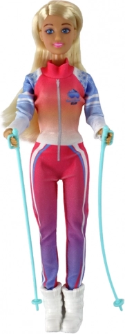 Bábika je oblečená do farebného lyžiarskeho setu a má k dispozícii lyže, paličky, prilbu a zimné topánky pre realistickú zimnú zábavu.