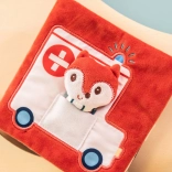 Táto textilná knižka je špeciálne navrhnutá pre deti od 12 mesiacov, aby im umožnila interaktívnu a vzdelávaciu hru. Príbeh o líške Alice, ktorá cestuje so svojou sanitkou a lieči priateľov ako prasiatko, oslík Ignác alebo srnčeka Stellu, umožňuje deťom rozvíjať empatiu a predstavivosť. Súčasťou knihy je prstová bábka, ktorú možno oživiť hraním konkrétnych scén a vďaka tomu podporuje rozvoj jemnej motoriky u detí.