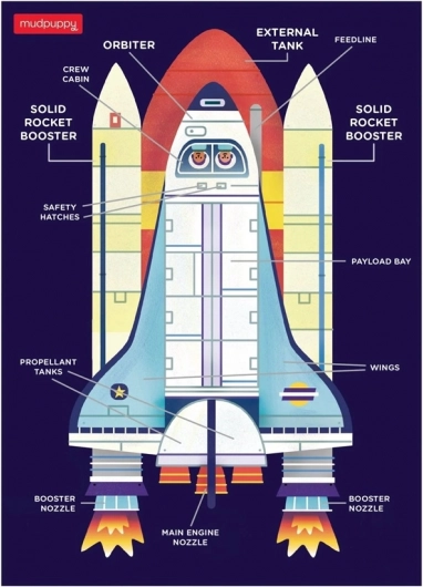 Mini puzzle raketoplán od Mudpuppy je ideálna tvorba pre kreatívne a zvedavé deti. Vďaka realistickému schématu raketoplánu na zadnej strane si deti nielen hrajú, ale aj učia, z čoho sa raketoplán skladá. Puzzle je vyrobené z 90% recyklovaného papiera, krabička obsahuje 70% recyklovaného papiera a farby sú netoxické a na sójovej báze, čo zaručuje bezpečnosť a šetrnosť k životnému prostrediu. Tento produkt spĺňa bezpečnostné normy CPSIA, ASTM a CE.