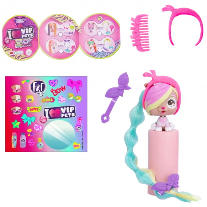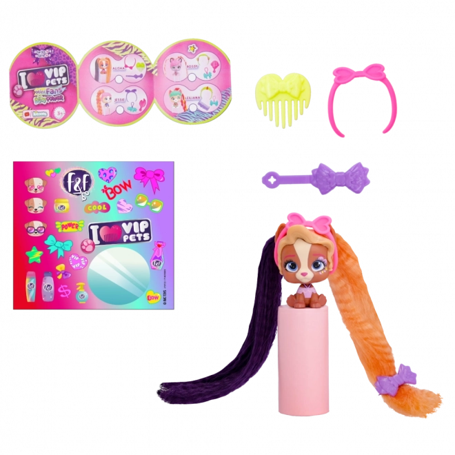 VIP Pets Mini Fans Bow Power je kolekcia, ktorá prináša 8 rôznych mini šteniatok, každé s úplne unikátnymi vlasovými doplnkami. Tieto rozkošné šteniatka sledujú najnovší trend Bow Power. Vo vnútri balenia nájdete: