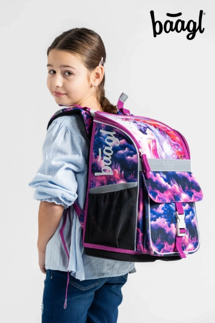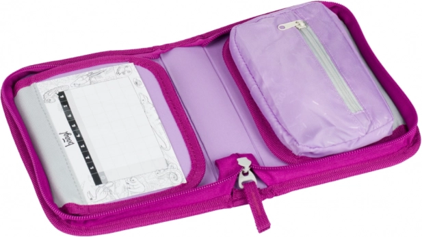 Aktovka, peračník a vrecko so zladeným motívom: peračník s kvalitným zipsom YKK a vrecko s vreckom na zips a karabínkou na pripnutie.