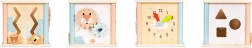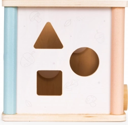 Deti sa učia rozpoznávať farby a tvary pri vkladaní kociek do správnych otvorov. Podporuje logické myslenie a koordináciu oko–ruka.