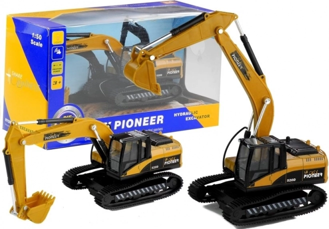 Model je vyrobený z kombinácie kovu a odolného plastu, má gumové, behúnové pásy a je spracovaný v mierke 1:50 s dôrazom na detaily – kabína so sedadlom, potlače a značenie. Hračka je vhodná pre deti od 3 rokov, spĺňa normy CE a je navrhnutá bez ostrých hrán pre bezpečné používanie.