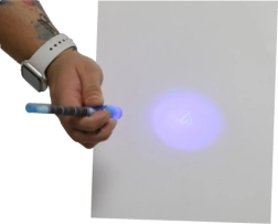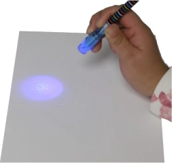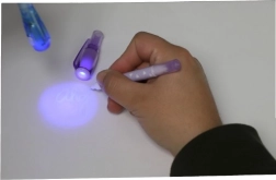 Neviditeľný atrament viditeľný iba pod UV lampou v uzávere pera. Skvelé na tajné správy a špiónske hry.