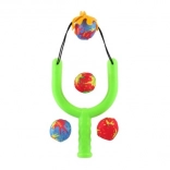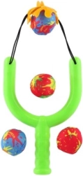 Súprava obsahuje 4 pestré vodné bomby a pevný plastový prak s pružným košíčkom na pohodlné a bezpečné vystreľovanie.
