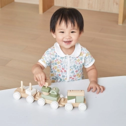 Drevený vláčik značky Polar B je zábavná hračka, ktorá prináša radosť a rozvíja detskú kreativitu. Skladá sa z troch vagónikov a 14 kociek rôznych tvarov. Vďaka fantázii detí je možné vytvoriť rôzne kombinácie tvarov a farieb, čo podporuje ich motorické schopnosti.