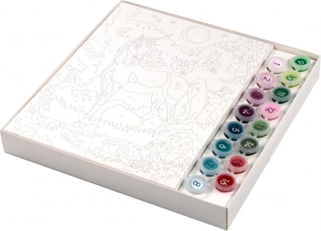 Sada na maľovanie podľa čísel s motívom jednorožca je skvelá voľba na pohodové tvorenie doma. Vďaka predtlačeným plochám s číslami vás bezpečne prevedie celým procesom a vy si vychutnáte pokojnú, sústredenú zábavu s krásnym výsledkom.