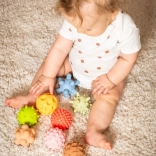 Každá loptička ponúka jedinečný zážitok vďaka rôznorodým povrchovým vzorom, ktoré stimulujú hmatové vnímanie vášho dieťaťa.