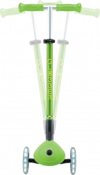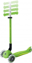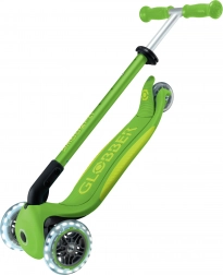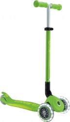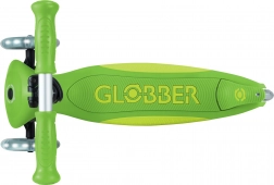 Kolobežka GLOBBER Primo Foldable Plus Lights vyniká kombináciou stability, bezpečia a zábavy. Dve veľké predné kolesá s priemerom 120 mm so svietiacimi LED diódami na dynamo zaujmú na prvý pohľad a zlepšia viditeľnosť. Nízka a široká doska s protišmykovým povrchom podporuje istý postoj a pohodlné ovládanie pre začínajúcich jazdcov.
