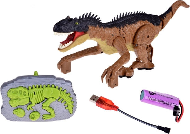 Dinosaurus funguje na dobíjateľnú batériu, ktorá je súčasťou balenia. Pre diaľkové ovládanie sú potrebné 2 batérie typu AA (nie sú súčasťou balenia). Dinosaurus má pohyblivé končatiny, čo mu umožňuje realistické pohyby.