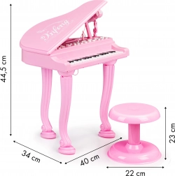 Užite si nezabudnuteľnú zábavu s týmto ružovým pianom, ktoré vnesie do vášho domova hudobnú atmosféru. Piano je navrhnuté tak, aby deťom umožnilo komponovať vlastné piesne a poskytuje realistický vzhľad skutočného nástroja. Súčasťou setu je stolička, ktorá zaisťuje pohodlie pri hre pre vašich malých umelcov.
