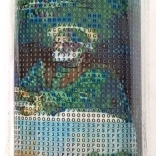 Postupne odkrývajte ochrannú fóliu, nasypte vybranú farbu kamienkov do misky, naberte vosk do hrotu pera a prenášajte kamienky na označené miesta. Po dokončení farbu vráťte do vrecka a pokračujte ďalšou.