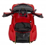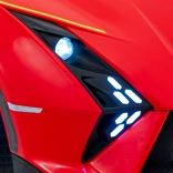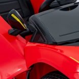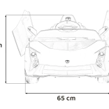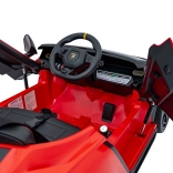 Realistické detaily – otváracie dvere typu scissor, funkčné LED svetlá a prepracovaný volant – dopĺňa komfortné sedadlo z eko kože s bezpečnostným pásom. Mäkké EVA kolesá (Ø 22 cm, šírka 8 cm) tlmia nerovnosti a zvyšujú priľnavosť. Dospelí majú všetko pod kontrolou vďaka ovládaču 2,4 GHz so STOP tlačidlom.