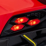 Mäkké EVA kolesá (Ø 22 cm, šírka 8 cm) výborne tlmia nerovnosti. Predné a zadné LED svetlá zvyšujú viditeľnosť a dodávajú realistický vzhľad športového vozidla.