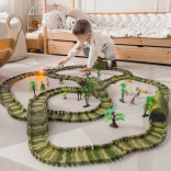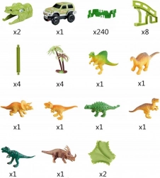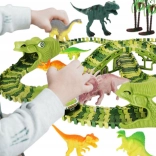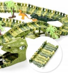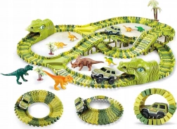 Postavte deťom svet pravekých dobrodružstiev. Sada obsahuje všetko pre dlhé a nápadité hranie: modulárnu zelenú dráhu, 8 dinosaurov (vrátane 2 veľkých), 2 tunely v tvare dinosaurej hlavy, mosty, stromčeky a elektrické autíčko na batériu AA. Diely jednoducho zacvaknete do seba a vytvoríte okruh, v ktorom autíčko jazdí samo.