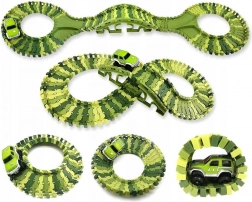 Maximálne rozmery zostavenej dráhy sú cca 80 × 85 × 8 cm, takže sa bez problémov zmestí do detskej izby. Sada rozvíja tvorivosť, priestorovú predstavivosť a manuálne zručnosti – a zároveň ponúka dynamickú jazdu vďaka pružnému povrchu dráhy s dobrou priľnavosťou pre vozidlo.