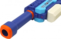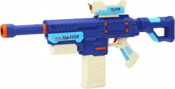 Nabíjacia vodná pištoľ M416! Táto futuristická puška s pôsobivým dizajnom v odtieňoch modrej a bielej s oranžovými akcentmi je dokonalým spoločníkom na letné dobrodružstvá pre deti aj dospelých.