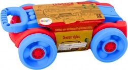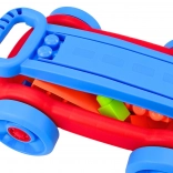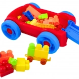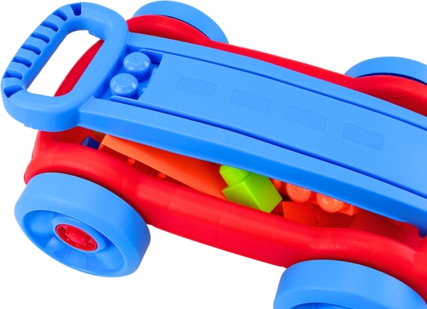 Táto hravá sada kombinuje zábavu a poriadok: robustný plastový vozík na štyroch kolesách bezpečne odvezie kocky aj ďalšie obľúbené hračky. Vďaka nízkej hmotnosti a dlhej rukoväti ho bez ťažkostí zvládnu aj menšie deti a vďaka modro‑červenému dizajnu ich okamžite zaujme.