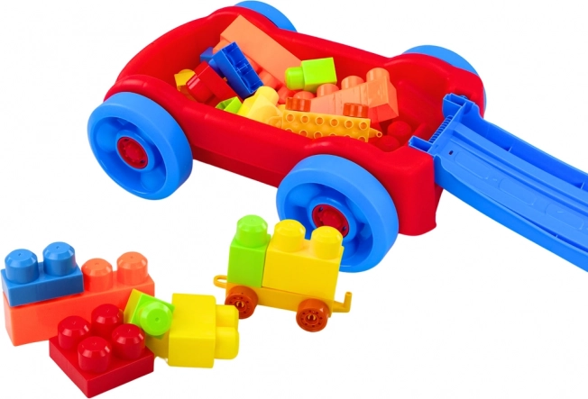 Ľahký plastový vozík s kockami v modro‑červenom vyhotovení deti ľahko ťahajú za praktickú rukoväť. Farebné dieliky podporujú kreativitu a jemnú motoriku, všetko sa navyše pohodlne ukladá do vozíka. Bezpečnosť potvrdzuje certifikácia CE a EN71, ideálne od 3 rokov.