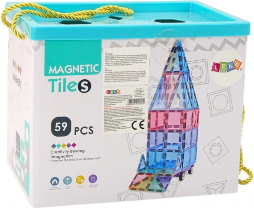 Magnetická stavebnica s 59 farebnými panelmi prináša deťom hodiny tvorivej zábavy a učenia. Dieliky s integrovanými magnetmi sa ľahko spájajú, stavby sú stabilné a deti si rozvíjajú jemnú motoriku, kreativitu aj logické myslenie. Kvalitné a bezpečné materiály, elegantný polopriehľadný vzhľad a praktický úložný box s ušami na jednoduché prenášanie.