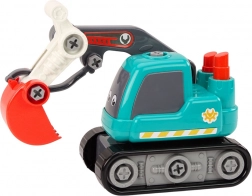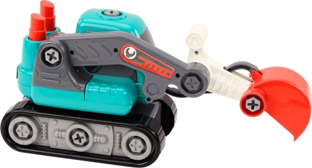 Tento kreslený pásový bager v tyrkysovej farbe nadchne každé dieťa, ktoré miluje staveniská a techniku. Vďaka skrutkám a priloženým nástrojom si deti môžu vozidlo samy rozobrať a opäť zložiť, čím rozvíjajú trpezlivosť, logické myslenie a zručnosť.