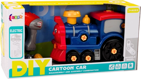 Zábavná a edukatívna hračka pre malých konštruktérov: stavebná lokomotíva v tmavomodrej farbe s náradím podporuje jemnú motoriku, sústredenie a kreativitu. Súčasťou je detská vŕtačka, skrutkovač a vymeniteľné nástavce na jednoduché rozoberanie a skladanie. Hračka má certifikáciu CE, spĺňa normu EN71 a je vhodná pre deti od 3 rokov. Vŕtačka je napájaná 3× 1,5 V AAA (batérie nie sú súčasťou balenia).