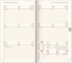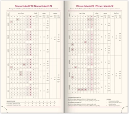 Týždenný rozvrh s česko-slovenským kalendárom a doplnkovými jazykmi.