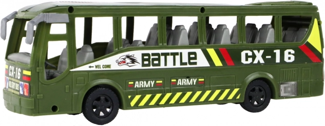 Odolný zelený autobus/transportér s armádnymi nápismi rozšíri možnosti hry na zemi. Ideálny na prepravu jednotiek a vybavenia.