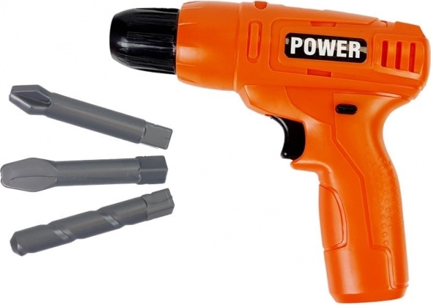 Ľahká plastová vŕtačka s vymeniteľnými vrtákmi padne do malej ruky a podporuje nácvik skrutkovania a montáže. Ideálna na role-play malých kutilov.