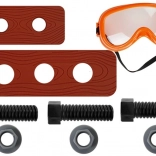 Súprava obsahuje „dosky“, skrutky, matice a ochranné okuliare pre realistickú, no bezpečnú hru. Deti si trénujú presnosť aj logické myslenie.